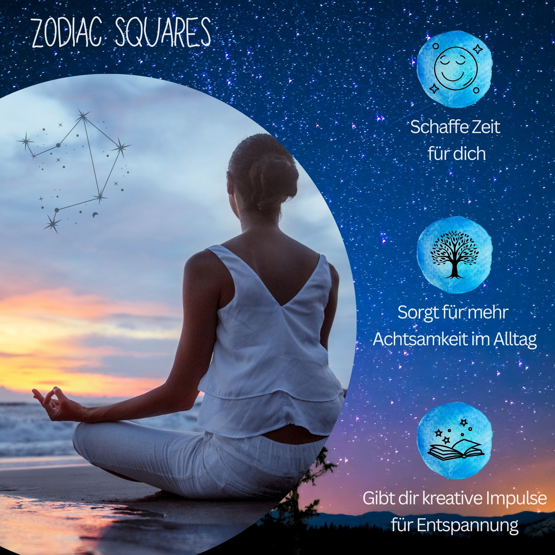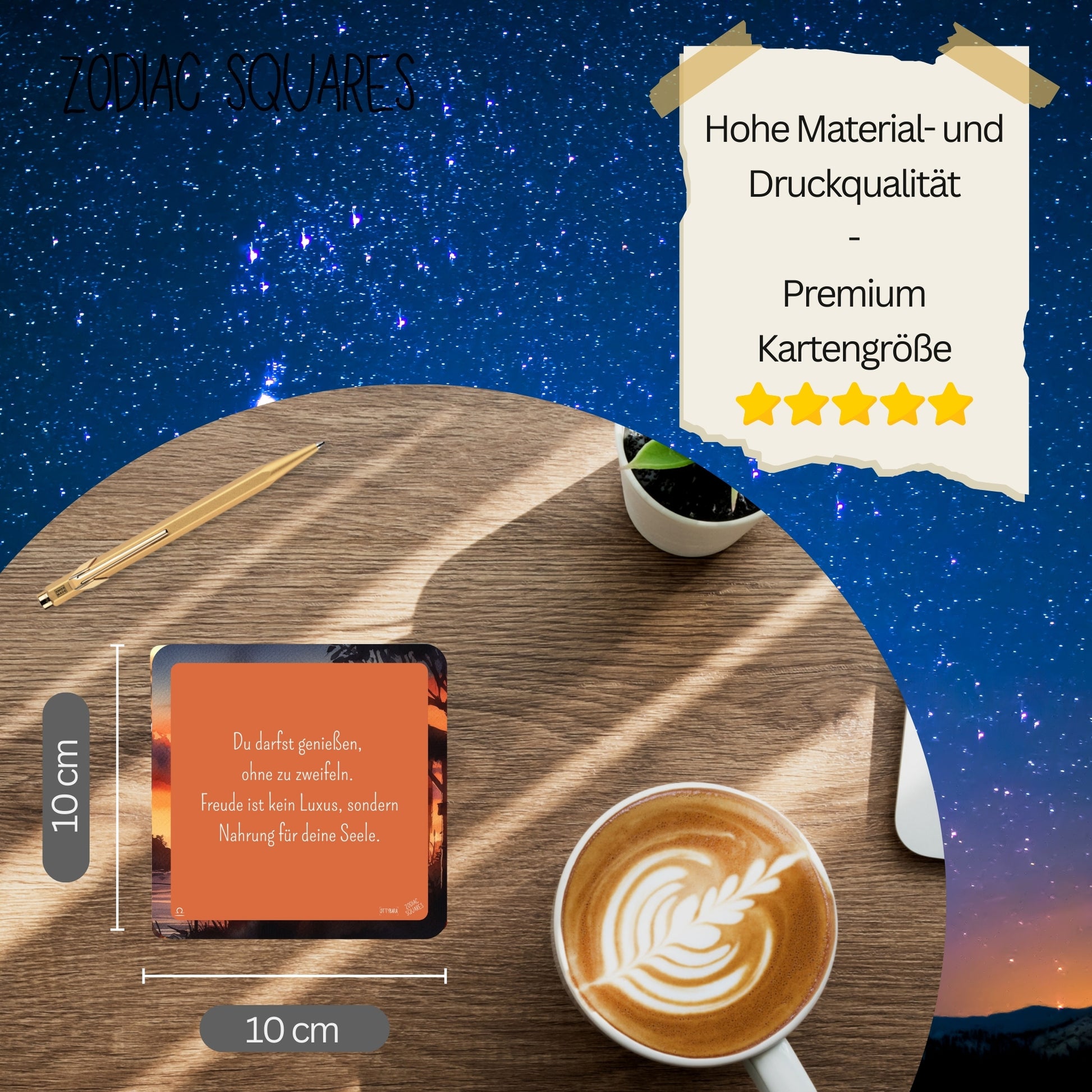 Zodiac Squares – Sternzeichen Waage – 30 inspirierende Achtsamkeitskarten mit Kartenständer aus Holz | Hochwertige doppelseitige Designs für Achtsamkeit, Motivation & Selbstreflexion